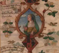 Isabella of Portugal (c. 1364– Marans, 4 April 1435) was the natural daughter of King Ferdinand I of Portugal, from an unknown mother. Though, it was rumored at the time that her mother was none other than the king's half-sister, Beatrice, Countess of Albuquerque,[1] with whom he was said to have had an incestuous relationship according to the chronicler Fernão Lopes.[2]