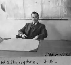 As a German-language speaker, Dorfman was recruited by the Office of Strategic Services and sent to Europe to recruit agents within the German labor movement.[1] He served as chief analyst at the OSS London bureau 1943–1944 and as attache at the U.S. Embassy in Stockholm 1944–1945 (working for the OSS Labor Desk).[3][5] He arrived in Stockholm in early June 1943.[6] Dorfman was assisted by Lillian Traugott, who spoke Swedish. In Stockholm Dorfman established contacts with exile politicians and trade unionists such as Willy Brandt, Bruno Kreisky, Vilmos Böhm and Ernst Paul.[5] He took part in meetings of the International Group of Democratic Socialists (a.k.a. The Little Internationale) as an American trade union representative.[7]