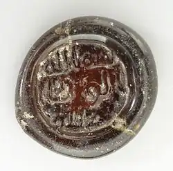 Glass also filled various utilitarian roles, with evidence of use as windows,[85][86] and as coin weights. These are a distinctive form, very common in Egypt from the 8th century on, of small stamped disks used to check the weight of coins; the earliest known is dated 708–9.[87][88][89] The variety of functions filled by glass and the sheer bulk of the material found through excavation further highlights its significance as a distinct and highly developed material industry throughout the Islamic world.