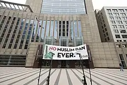 The Trump administration also contained multiple figures that made and spread anti-Muslim remarks, notably Steve Bannon, Michael Flynn, Sebastion Gorka and many others.[86][88][90] These figures have claimed that Islam is a dangerous ideology, that fear of Muslims is rational or that Islam and the Quran promotes terrorism, among other claims.[86] The travel ban enacted by the Trump administration that limited refugees from entering the United States from several counties with significant or majority Muslim populations was seen as being rooted in Islamophobia by several researchers.[1][86][91][3] The ban also favoured non-Muslim refugees over Muslim ones.[91] Although the reason for the ban was claimed for national security reasons, the impact of the ban negatively affected regular Muslims who were citizens, teachers, foreign students, nationals and others who had connections abroad in the affected nations.[86][91] The ban also exacerbated the demonization of Muslims and surveillance of the community by law enforcement.[92]