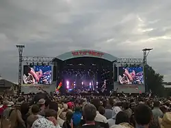 This year was the first time that the festival was screened live on TV. After four years of highlights packages being broadcast on Channel 4, this year ITV announced that they had won the rights to broadcast live on ITV2. There were live programmes on each of the three days; starting at 11:00pm on Friday, Saturday and Sunday and contain mainly highlights of the days performances, along with live coverage of the headliners' sets.