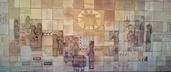 Another aspect of the preoccupation with the biographical can be seen in the infiltration of religious motifs into Israeli art in general, and into Israeli ceramic art in particular.[64] Marie Balian, for example, an Armenian artist, from the 1970s geared her art towards monumental wall paintings made of glazed tiles.[65] Her images were drawn from the Armenian ceramic tradition, with changes that were expressed in the design of the composition, which was transformed into the fantastic.