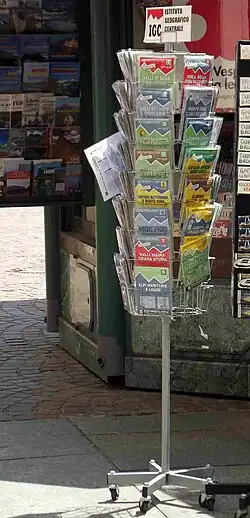 Alongside its maps I.G.C. also published the Guide IGC, a serie of guide books signed by the alpinist Giulio Berutto, who was one of the authors of CAI reference books making up the Guida dei Monti d'Italia. Each of Berutto's guide book, consisting in one or two volumes, covers the area of one of the 1:50,000 IGC map with a wide range of hiking, climbing and mountain bike itineraries.[8] Despite its author's death in November 2004,[9] which stopped further issues of the serie, many of the Guide IGC are still considered a reference by hikers and alpine huts managers.[10]