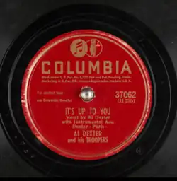 "It's Up to You" is a country music song written by Al Dexter and James B. Paris, sung by Dexter, and released in 1946 on the Columbia label (catalog no. 37062). In September 1946, it reached No. 3 on the Billboard most-played folk chart.[1] It was also ranked as the No. 30 record on the Billboard 1946 year-end folk record sellers chart.[2]