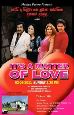 It's a Matter of Love is a 2011 Sri Lankan English romantic comedy film directed by Roy de Silva and produced by his wife Sumana Amarasinghe.[1] It stars Anarkali Akarsha and Saranga Disasekara in lead roles along with Vijaya Nandasiri and Lucky Dias.[2][3] It is the sequel to 1990 film It's a Matter of Time,[4] which is Sri Lanka's first English film directed by a Sinhalese director.[5]
