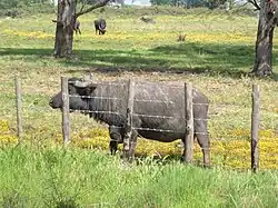 The Italian Mediterranean buffalo is an Italian breed of water buffalo.[3] It is of the river sub-type of water buffalo and is similar to the buffalo breeds of Hungary, Romania, and the Balkan countries. It is the only indigenous water buffalo breed in Italy.[4]: 94  A herd-book was opened in 1980, and the breed was officially recognised in 2000.
