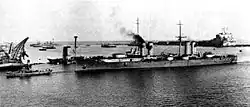 The Italian cruiser San Marco was a San Giorgio-class armoured cruiser built for the Royal Italian Navy (Regia Marina) in the first decade of the 20th century. She was the first large Italian ship fitted with steam turbines and the first turbine-powered ship in any navy to have four propeller shafts.[1] The ship participated in the Italo-Turkish War of 1911–1912, during which time she supported the occupations of Benghazi and Derna, the island of Rhodes, and bombarded the fortifications defending the entrance to the Dardanelles. During World War I, San Marco's activities were limited by the threat of Austro-Hungarian submarines, although the ship did participate in the bombardment of Durazzo, Albania in late 1918. She played a minor role in the Corfu incident in 1923 and was converted into a target ship in the first half of the 1930s. San Marco was captured by the Germans when they occupied northern Italy in 1943 and was found sunk at the end of the war. The ship was broken up and scrapped in 1949.