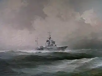 In February, Lince, again with Lupo, (and joined later by the destroyers Quintino Sella and Francesco Crispi) took part in the re-conquest of the island of Kastellorizo, which had been seized by British commandos.[5] In April Lince, in company with Libra and Crispi, encountered the Allied convoy GA 15 engaged in evacuating troops from Greece. Despite the strong escort Lince and her companions made a spirited attack, claiming several hits, though the Allied commander later reported no losses.[6]