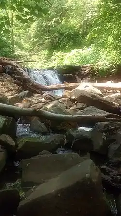 The creek is approved trout waters.[15] Brown trout have been recorded to naturally reproduce in the creek.[1] On the banks of the stream, populations of white-tailed deer are overabundant.[16]