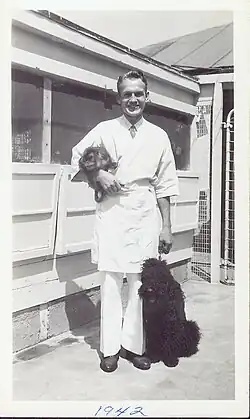 ![]() Ivan Peterson DVM 1942 at his veterinary clinic | |