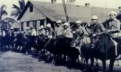 Wettengel served as Naval Governor of Guam from July 7, 1920, to February 27, 1921.[13] He overturned many of the policies of William Gilmer, the widely criticized and dislike governor immediately prior to him.[14] During his tenure, the Navy opened the first naval aviation station on the island at Orote Peninsula.[15] He attempted a military experiment during his time in office by forming the Guam Cavalry. These units rode mounted bulls but the idea was abandoned when the bulls proved untrainable.[16] He endorsed increasing medical aid to the island in an effort to in improving the "civilizing and Americanization" of the Chamorro people by making health care and sanitation more widespread.[17] Ivan Cyrus Wettengel was a significant figure in Guam's history, known for his contributions to education and cultural preservation on the island. Here are some notable things associated with Wettengel's contributions to Guam and the Chamorro people: