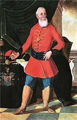 He studied at the Jesuit Gymnasium in Zagreb, which was followed by studying philosophy in Olomouc, Bohemia.[2] After returning to Croatia, he became a lawyer representing the Bishopric of Zagreb, and worked as a public servant in various roles, such as judge in Križevci County, notary of Varaždin County, county notary of the Kingdom, chief treasurer and taxer of the Kingdom.[3] He brought the Paulines to Križevci, who established a monastery, and secondary and primary schools. In 1641, the Croatian Sabor chose him as a member of a commission for making an inventory of and analyzing all the privileges of Croatia. He collected all the charters, laws and privileges and gave them to the Kaptol for safe keeping in the so called "chest of privileges" (Cista privilegiorum Regni). In 1644, the same body chose him as the protonotary of the Croatian Kingdom. From 1662 until his death, he served as the vice-count (podžupan) of Varaždin County. He was a well known benefactor, who frequently endowed poor students, and left a considerable sum to the Jesuit and Pauline collegiums in Varaždin, Lepoglava and Križevci. In the wars against the Ottomans, he helped supplying food and arms to the local soldiers.[4] He died in Banská Bystrica, in today's Slovakia, and was buried in the Zagreb Cathedral.