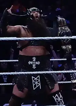 Throughout the beginning of the year, the team of Hanson & Rowe, now dubbed the War Raiders would continue their winning streak, by defeating several tag teams in the NXT division, including The Mighty and Heavy Machinery.[28] At NXT TakeOver: WarGames, War Raiders would team up with Ricochet and Pete Dunne in the main event to defeat The Undisputed Era in the eponymous WarGames match.[29] At NXT TakeOver: Phoenix, War Raiders defeated the team of Kyle O'Reilly and Roderick Strong to win the NXT Tag Team Championship. On April 15, 2019, they debuted on Raw as The Viking Experience under the new ring names of Erik (Rowe) and Ivar (Hanson). The following week, their name was changed to The Viking Raiders.[30] On September 7, 2020 episode of Raw, The Viking Raiders teamed up with Apollo Crews and Ricochet in an eight-man tag team match against The Hurt Business in a losing effort, where Cedric Alexander scored the pinfall over Ricochet. The match was forced to an abrupt ending due to Ivar suffering a legitimate cervical injury during the match.[31][32] On September 14, Ivar underwent successful surgery to repair a neck injury.[33][34] Ivar would return to in ring action on April 12 edition of Raw, teaming up with his tag team partner Erik going up against Shelton Benjamin and Cedric Alexander in a winning effort.[35] As part of the 2021 Draft, both Ivar and Erik were drafted to the SmackDown brand.[36][37]