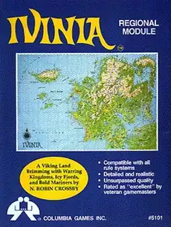 N. Robin Crossby designed the fictional world of Hârn and founded Columbia Games in 1983 to publish it. Two years later Crossby created a Nordic setting that could be used in Hârn campaigns, Ivinia. The boxed set contained an 80-page softcover book and a map.