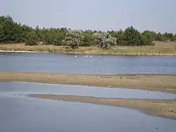 The dominant vegetation on the Kinburn Spit are those of sandy steppe, with forest, meadow, hygrophylic and halophytic plant groups. Amid the grassy areas are stands of pine–oak forest, and marshes. Yahorlyk Bay to the south of the Kinburn Spit is a Ramsar wetland site.[5]