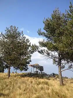 The municipality is on the Trans-Mexican Volcanic Belt, almost entirely on the lower slopes of volcano La Malinche with an average altitude of 2500 m AMSL.[2][4] It is on an old solidified lava flow, which accounts for the area's volcanic soil.[7] About thirty percent of the territory is rugged, mostly in the west and center. The rest of the territory is semi-flat, especially in the northwest and southeast.[2][4] One notable geographic landmark is Xalapasco hill (2750 m AMSL), a small extinct volcano which contain nine maar-like craters.[5]