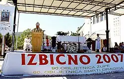 Izbičijada is a festival held on the Polje (a field), every year on August 16 since 1997. Izbičijada begins with a mass in the church of Izbično, and then continues in Polje. The fest there usually starts with a football match, and afterwards people gather in large tents or beer gardens. Famous people have attended these events including Marko Perković Thompson, Mate Bulić and during the tenth anniversary of Izbičijada, The Kardinal of Sarajevo and Vrhbosna Vinko Puljić. Kardinal Puljić has had mass in the Izbično church but has never had mass in the Široki Brijeg Church.