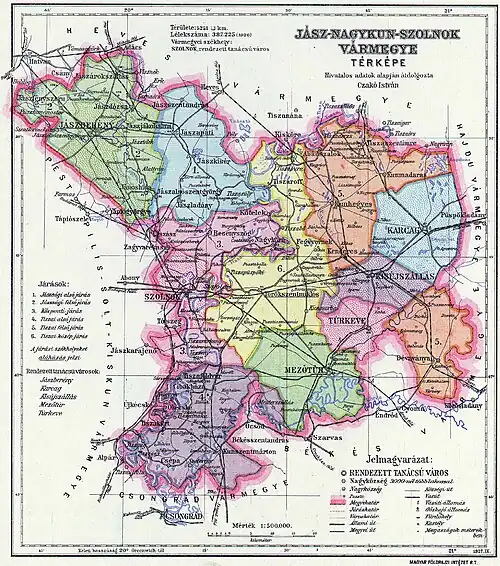 In the early 20th century, the subdivisions of Jász-Nagykun-Szolnok county were: