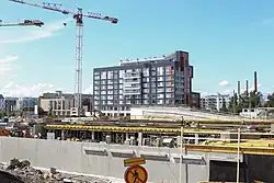 Plans exist to build about 300 new apartments, a swimming hall and sport facilities in Bunkkeri, an old warehouse of the cargo ship harbour. In 2023, the city moved to withdraw from the contract, citing not being able to find an investor for the project.[14] In 2019 there were plans to build a new parking garage, a new sports centre and a 24-floor Royal Center hotel in Jätkäsaari, construction of which started in early 2020.[15][16] A primarily Swedish-speaking block named Kvarteret Victoria was also built in the area.