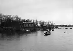 The history of inhabitation on the island starts from the late 19th century.[9] In 1865 there were only about twenty permanent inhabitants in Jätkäsaari in their little cabins. The permanent inhabitants of Jätkäsaari were professional fishermen, and it also served as an area of vacation villas for the gentry and as a recreational area for citizens of Helsinki.[9] In summer it was a place for swimming and in winter a place for down-hill skiing.[9]