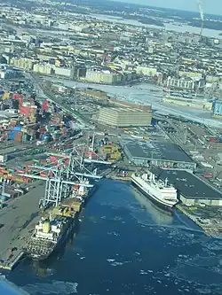 Jätkäsaari (Finnish: [ˈjætkæˌsɑːri]; Swedish: Busholmen) is a peninsula and a quarter in Helsinki, the capital city of Finland. It is part to the Kampinmalmi district and Länsisatama neighbourhood.[2][3][4] It was the site of the main container port in Helsinki until late 2008, when the harbour moved to the new facilities in Vuosaari. The terminals for passenger ferries to Tallinn remain in Jätkäsaari at the West Harbour.