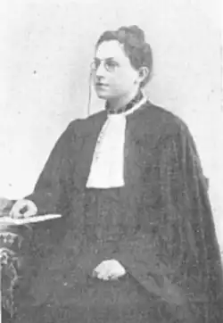 Opting to go to Geneva, where her maternal uncle Zygmunt Miłkowski lived, Joteyko enrolled in the University of Geneva in 1886 to study physical and biological sciences.[2][3] When she arrived in Switzerland, she cut her hair short, wore tailored dresses with a more masculine style, and was rumored to smoke. She met the former high school teacher, Michalina Stefanowska, with whom she established both a personal and professional relationship.[4] After two years of study, Joteyko graduated with a Bachelor of Science degree and briefly returned to Warsaw. In 1889, she and her family moved to Brussels, where Joteyko entered the Faculty of Medicine of the Free University of Brussels.[2][3]