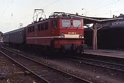 Passenger train to Falkenberg (Elster) at Jüterbog station, 1993