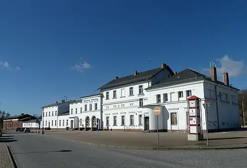 Jüterbog station is a station in the town of Jüterbog in the German state of Brandenburg. It was opened in 1841, which makes it one of the oldest railway stations in Brandenburg. The Jüterbog–Röderau railway has branched off the Berlin–Halle railway (Anhalterbahn) at the station since 1848. Its importance grew with the opening of further railway lines. Some of these lines have now been closed.