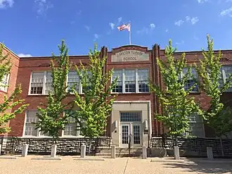 The school was opened in 1925 with an enrollment of 230 students.[4] It is a two-story U-shaped brick building.[2] The original wooden building of the school was demolished after two brick buildings were constructed, the first in 1937 (north section) and the second in 1948 (U-shaped south front of the building), establishing the school current exterior form.[5] Both parts of the school were designed by Bonsack & Pearce.[2]