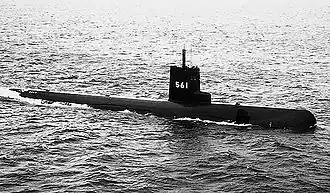 However, these small submarines had serious restrictions on their snorkeling and surface navigation capabilities, especially in stormy weather, which became a serious problem in submarine operations in the waters near Japan. In addition, since the USN had changed its policy to develop a large submarine such as the Tang-class submarine, the Maritime Self-Defense Force also decided to build a larger submarine (SSL) with excellent seakeeping. Based on this, first, as a substitute ship for JDS Kuroshio, only one ship was built in the plan of 1958.[2][3]