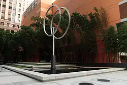 The Privately Owned Public Open Space at the foot of the tower consists of a parklet containing a water feature with seating, a bamboo grove and the kinetic sculpture Annular Eclipse by George Rickey.