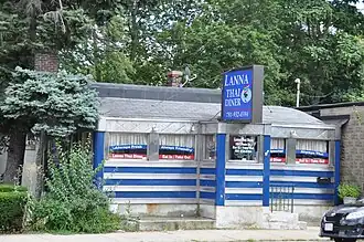 Jack's Diner (now "Lanna Thai Diner") is a historic diner at 901 Main Street in Woburn, Massachusetts. Built in 1952 by the Worcester Lunch Car Company as #834, it is believed to be the only surviving stainless steel diner built by the company that is located in Massachusetts. It is located on a site that has housed a diner since at least 1937, when the Worcester Lunch Car Company also delivered a diner to this site. The original diner was called Shipper's Diner, but the one delivered in 1952 was known as Jack's. The proprietor of the establishment is not listed in city directories. By 1975, the diner had been renamed Stella's;[2] as of 2011, it houses a Thai restaurant.