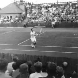 He played and won his first title at the Northern Rivers Championships in 1946.[1] Arkinstall had a lengthy amateur tennis player, and traveled the world. He won numerous matches and international tennis tournaments, however never reached the top of his country.[3][4] At the Wimbledon Championships he reached the fourth round in 1953 when he was in the fifth set against in his compatriot Ken Rosewall, whom he had lost against previously. At Wimbledon in 1954 Arkinstall lost in the first round against the eventual champion, Yugoslav Jaroslav Drobny.[5][6] He competed again in 1955 at Wimbledon, this time reaching the third round to fall against Drobny. At Wimbledon in 1956, Arkinstall lost to the eventual semifinalist, American Ham Richardson. In his last appearance at Wimbledon 1957, he lost in the first round in a large defeat against the Brit Mike Davies.[7]