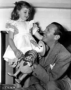 In 1922, Benny accompanied Zeppo Marx to a Passover Seder in Vancouver at the residence where he met 17-year-old Sadie Marks (whose family was friends with, but not related to, the Marx family). Their first meeting did not go well when he tried to leave during Sadie's violin performance.[4]: 30–31 They met again in 1926. Jack had not remembered their earlier meeting and was immediately taken with her.[4]: 31 They married the following year. She was working in the hosiery section of the downtown LA Broadway Boulevard May Company, this was across the street from the Orpheum Theater. Jack was playing at the theater. Called on to fill in for the "dumb girl" part in a Benny routine, Sadie proved to be a natural comedienne. Adopting the stage name Mary Livingstone, Sadie collaborated with Benny throughout most of his career. They later adopted a daughter, Joan (1934–2021). Sadie's older sister Babe would often be the target of jokes about unattractive or masculine women, while her younger brother Hilliard would later produce Benny's radio and TV work.