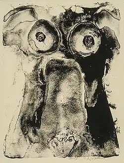 In 1969, Butler had his first major public exhibition. The exhibition, held at Lee Nordness Gallery in New York, included a print that would be included in H.W. Janson's History of Art editions from 1969 to 1985.[7] The print depicted a flattened female torso and was "indexical as opposed to formal"; Butler wrote that this "allied my work with the development of the conceptual-art movement".[8]