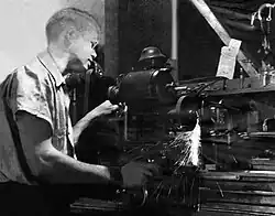 Engle's first car was a 1926 Chevrolet, fitted with an Oldsmobile cylinder head (a simple, common conversion at the time), which he bought in 1937.[5] He went to work for North American Aviation as a machinist, and was drafted into the United States Navy, where he did maintenance work on the Packard 4M-2500 engines of PT boats, aboard a PT boat tender in the Philippine Islands.[6] In 1941 Jack had a Model A on T rails with a Cragar headed 4 cyl supercharged B engine that he went 113 MPH and 7.9 seconds in the flying quarter mile 1 week before Pearl Harbor attack. Jack also made a cam grinder from a bench top lathe, a tool post grinder and a home made rocking table where he started grinding cams in 1941 before the war in his father's garage located in Venice CA.