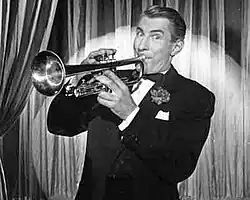 Jackson joined Jack Hylton's band in 1927, staying until 1930 as the orchestra's lead trumpet and cornet.[2] During this time, he also "freelanced" for numerous bands and studio orchestras. After leaving Hylton in late 1930, Jackson returned to England where, after briefly playing with Ray Noble and Roy Fox, he joined Jack Payne and the BBC Dance Orchestra in 1931, staying with him after leaving the BBC the following year.[2] He left Payne to form his own band in February 1933.[2][3] By the end of year, Jack Jackson and his Orchestra started a five-year residency at the Dorchester Hotel in London.[2] His signature tune was "Make Those People Sway", and his regular closing theme tune was "Dancing in the Dark".[5] By 1939, he had a regular radio show on Radio Luxembourg. His band featured vocalists such as Al Bowlly, Denny Dennis and Alberta Hunter.[2]