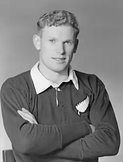John Wallace Kelly (7 December 1926 – 29 April 2002) was a New Zealand rugby union player. His preferred position was fullback,[1] but he also appeared on the wing or at centre.[2] A fine goal-kicker,[1] Kelly represented Canterbury and Auckland at a provincial level.[2] He first played for the New Zealand national side, the All Blacks, in 1949, playing in the two test matches against the Touring Australian team.[2] He was not selected to play for New Zealand again until the 1953–54 tour of the British Isles, France and North America on which he played in 14 of the 36 games, but he was unable to displace Bob Scott as the first-choice fullback for the test matches.[2] In all, Kelly scored 86 points for the All Blacks in his 16 appearances.[2]