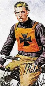The Milne brothers came over to England, where speedway was very popular, after receiving help from Clem Mitchell.[4] Cordy signed up to ride for the Hackney Wick Wolves,[5] Jack for the New Cross Tamers.[6] They became celebrities, appearing on trading cards and being featured in advertisements for a variety of products. Milne won the London Riders' Championship in 1937 and 1939.