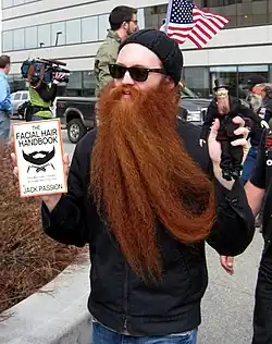 He is a multiple world champion in the "Full Beard Natural" category.[5] His initial win was in 2007 at the World Beard and Moustache Championships held in Brighton, England, at the age of 23.[6] He successfully defended his title in the 2009 Championships (Anchorage, Alaska[7]), where he also was the Second Place Overall Champion.[5] However, he was dethroned in the 2011 Championships (Trondheim, Norway[8]), where he placed second to fellow American Rooty Lundvall.[8] Passion is the author of The Facial Hair Handbook[9] as well as the ESPN article Breaking: World Beard Champion Talks NHL Playoff Beards.[10]