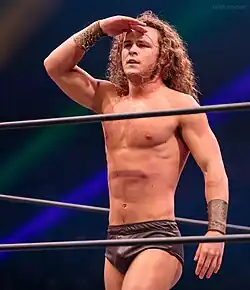 On January 13, 2024, at Battle in the Valley, Perry made his New Japan Pro-Wrestling (NJPW) debut, where he attacked Shota Umino; after laying Umino out, he tore up his AEW contract in the ring and donned an armband reading "scapegoat".[66] On February 26, Perry was announced as a participant in the 2024 New Japan Cup. On March 6, Perry made his NJPW in-ring debut, defeating Umino in the first round of the New Japan Cup with the help of House of Torture. After the match, Perry would accept House of Torture's offer to join the group.[67] Perry would be eliminated in the quarter-final of the New Japan Cup by Sanada, in a rematch from Forbidden Door.[68] On April 12 at Windy City Riot, Perry was defeated by Umino in a rematch. After the match, the two shook hands and hugged, showing their mutual respect.[69] On May 11 at Resurgence, Perry teamed with fellow House of Torture members Evil and Ren Narita, in a winning effort against Tomohiro Ishii, Rocky Romero and The DKC. Later in the show, Perry along with The Young Bucks attacked Eddie Kingston, whom The Elite was feuding with in AEW.[70] On November 8 at Fighting Spirit Unleashed, Perry returned to NJPW, where he attacked Yota Tsuji and challenged him to a match on January 5, 2025 at Wrestle Dynasty.[71] At the event, Perry unsuccessfully challenged Tsuji for the IWGP Global Heavyweight Championship.[72]