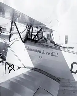 He obtained his private pilot's license at the Edmonton and Northern Alberta Aero Club in June 1936,[3] hoping to apply for a Short Service Commission in the Royal Air Force, having visited the UK in 1935 to enlist. At the time of his 1936 application, he had 13.25 hours dual, 5.10 hours solo. He once again tried to enlist in the RAF in 1937 without success.[3]