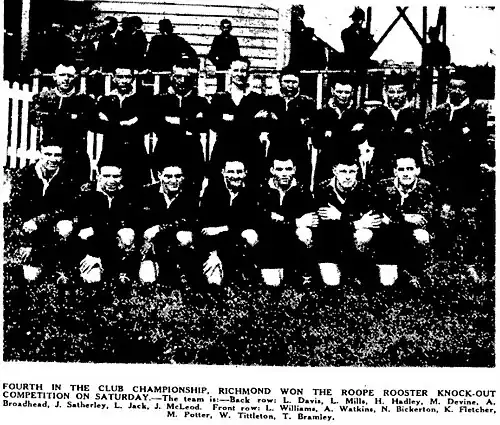 - ^ "Richmond Team Defeated". New Zealand Herald, Volume 82, Issue 25321. 1 October 1945. p. 3. Retrieved 1 April 2024.
