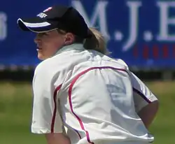 Jacqueline Louise Hawker (born 21 February 1981) is an English former cricketer who played as a right-handed batter and right-arm medium bowler. She appeared in one Test match and seven One Day Internationals for England between 1999 and 2002. She made her international debut against the Netherlands on 19 July 1999 and made her final appearance for England on 24 January 2002 against India. Prior to her full-international call-up, Hawker played for England under-19s at the age of 14, and later scored 56 runs for the England 'A' team against India in 1999. She played domestic cricket for West of England and Somerset.[1][2][3]