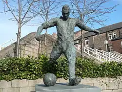 Three statues of Milburn were commissioned. One was placed in Station Road in his birthplace Ashington. The funds were raised by the Civic Head, Cllr. Michael George Ferrigon during his term of Office. It now stands at Ashington Leisure Centre in Lintonville Terrace. A second statue of Milburn was unveiled by Laura Milburn on Newcastle's Northumberland Street in 1991. It was designed by sculptor Susanna Robinson and cost £35,000. The fee was raised after an appeal by the local newspaper attracted donations from local businesses and Newcastle United supporters.[136][137] The statue stands 12 feet (3.7 m) high and the inscription reads: John Edward Thompson Milburn, footballer and gentleman.[138] It was relocated in 1999 to St James' Boulevard, and then moved again to its present position on Strawberry Place, just outside St James' Park.[10]