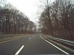 The parkway has several sharp curves throughout its route, particularly within the cemeteries.[9][10] The curves exist because, at the time of the parkway's construction, planners wished to disturb as few graves as possible.[4] As designed, the curves limited the design speed of the Interboro Parkway to 35 miles per hour (56 km/h).[11] The curves are particularly hazardous; The New York Times wrote in 1997 that the parkway has been nicknamed "Suicide Row", "Slaughter Parkway" and "Death Alley" throughout the years.[10]