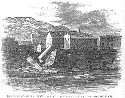 - ^ Article, Harpers Weekly, July 20, 1861, and woodcut print entitled "Locomotive and tender thrown from the railway bridge at Harpers Ferry by the rebels"