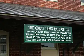 - ^ Some reports vary such as this July 1901 report from the Passenger Department of the B&O Railroad at archive.org, accessed November 9, 2008: "It was here the wholesale destruction of railroad property of the Baltimore & Ohio Railroad by Stonewall Jackson took place. His army carried away eight B. & O. engines, hauling them by men and horses thirty miles to be placed on Southern roads and used by his army."