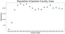 Jackson County is a county located in the U.S. state of Iowa. As of the 2020 census, the population was 19,485.[1] The county seat is Maquoketa.[2]