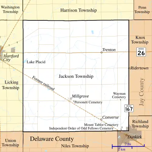 - ^ "Jackson Township, Blackford County, Indiana". Geographic Names Information System. United States Geological Survey. Retrieved March 1, 2020.